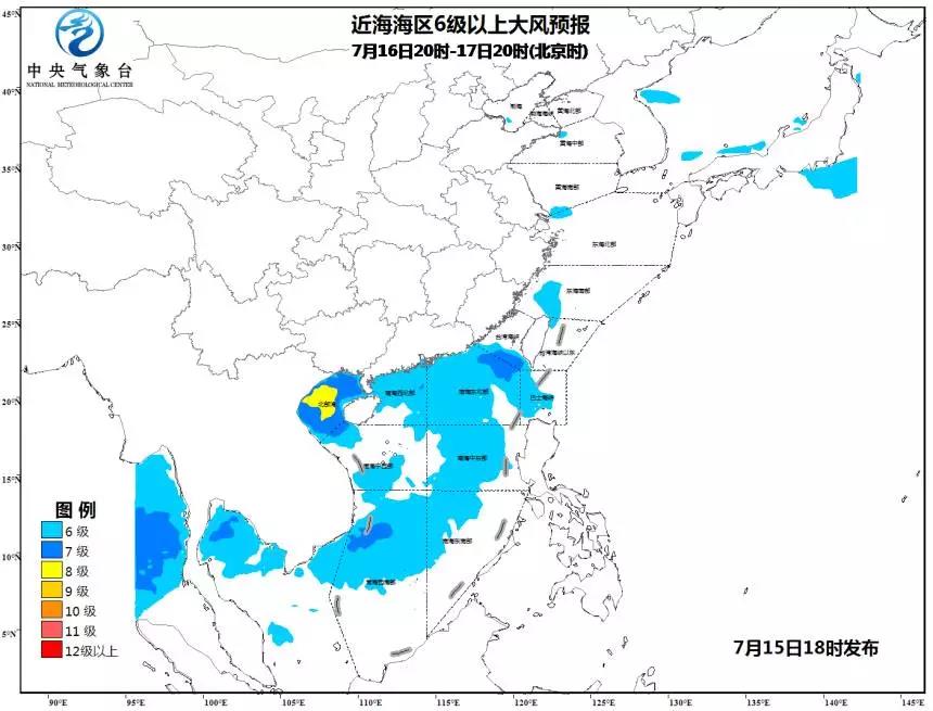 15日夜間至17日白天,南海西北部海域、北部灣、瓊州海峽將有7~8級(jí)、陣風(fēng)9~10級(jí)大風(fēng)。受大風(fēng)影響海域航行、作業(yè)的船舶,需注意航行安全。